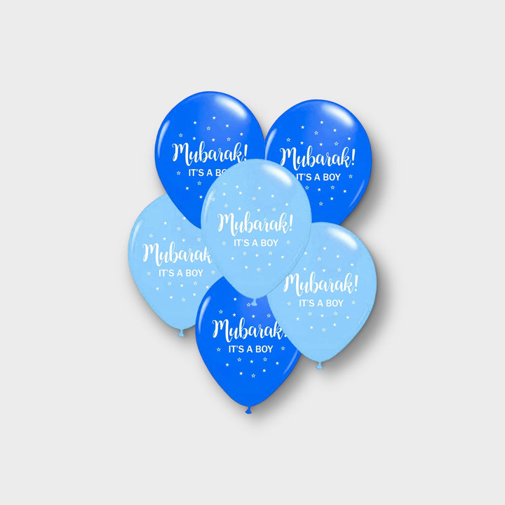Celebrate the arrival of a new baby with these 'Mubarak It's A Boy' Balloons in shades of blue.