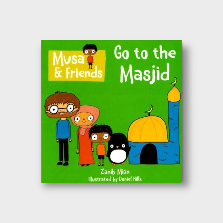Musa & Friends: Go to the Masjid- a charming board book for pre-schoolers. Written and created by award-winning author, Zanib Mian and spectacularly illustrated by Daniel Hills.