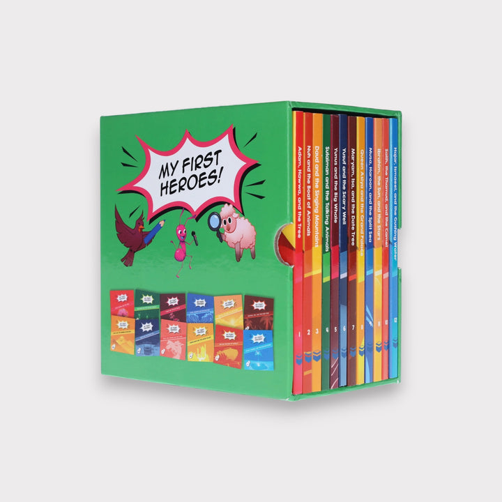 2 minute bedtime stories from the Qur'an - 12 little Books are included Classic stories to inspire your own little heroes with: heroic traits, activity guides, Qur'anic citations, tips for teaching and most important of all-real life heroes. Through these stories nurture heroic traits like being humble, thankful, patient, kind, brave and forgiving.