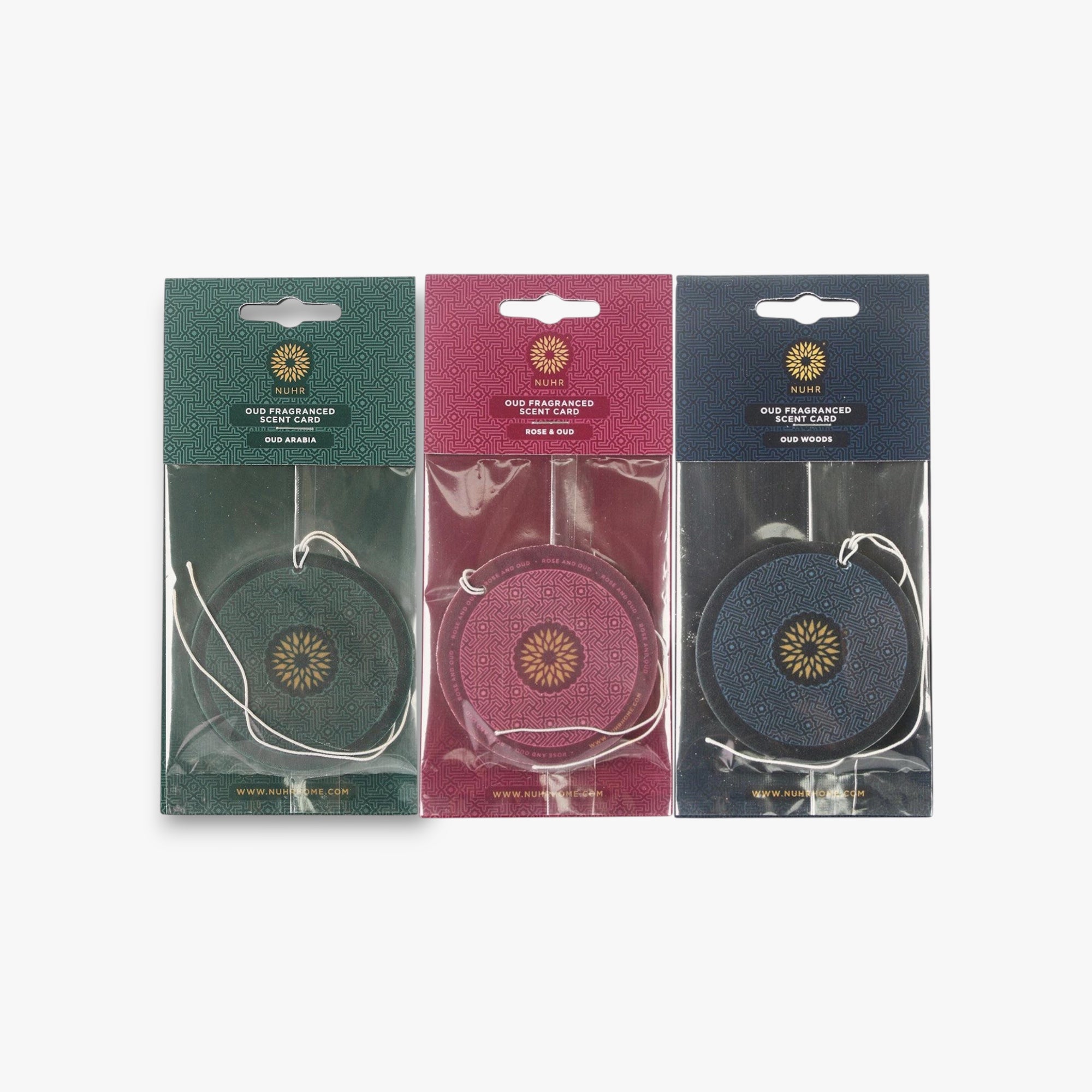 Experience our Car Air Freshener in Rose and Oud, Oud Arabia and Oud Wood, available as a pack of three scent cards. Environmentally friendly and lightweight, these cards fill your home, office, or car with a musky, deep, and sweet aroma. Not only does this premium car air freshener provide a sophisticated car fragrance, but it also ensures long-lasting freshness. As you step into your vehicle, enjoy the elegant blend of our specially crafted car scents, designed to elevate every journey. Discover the difference with our luxurious Rose and Oud scent cards today.