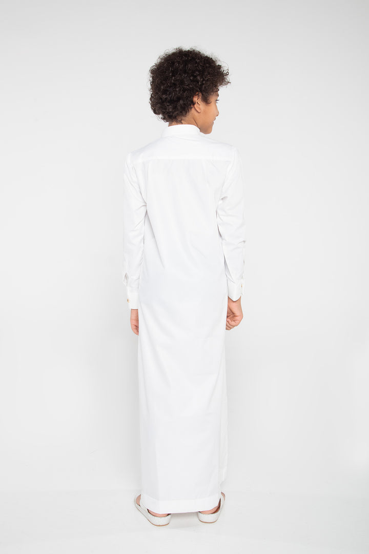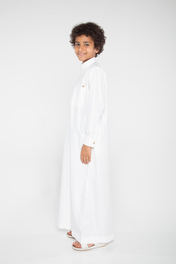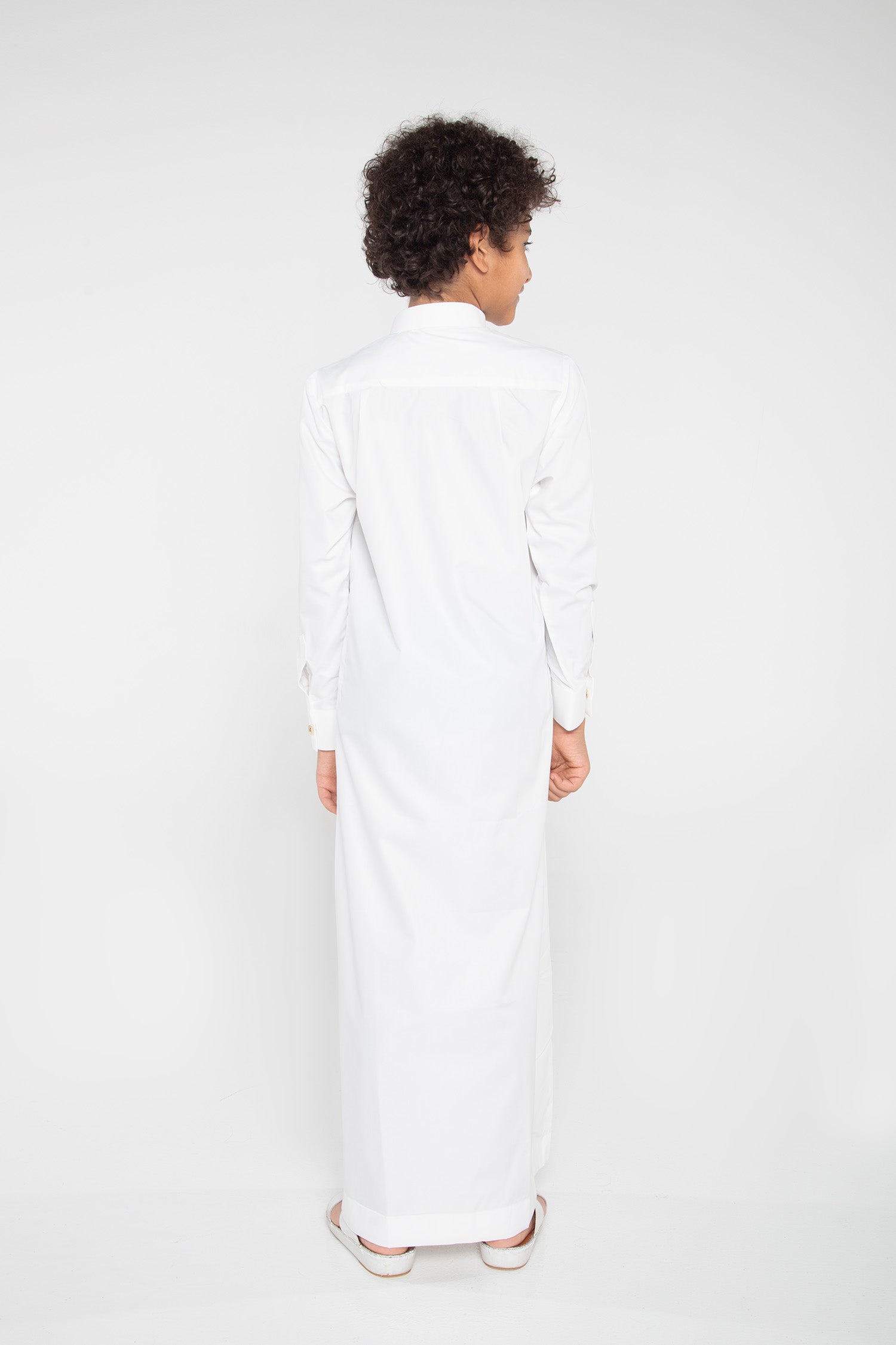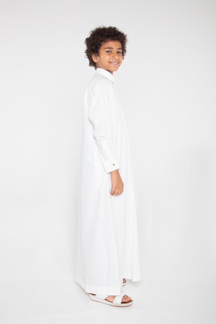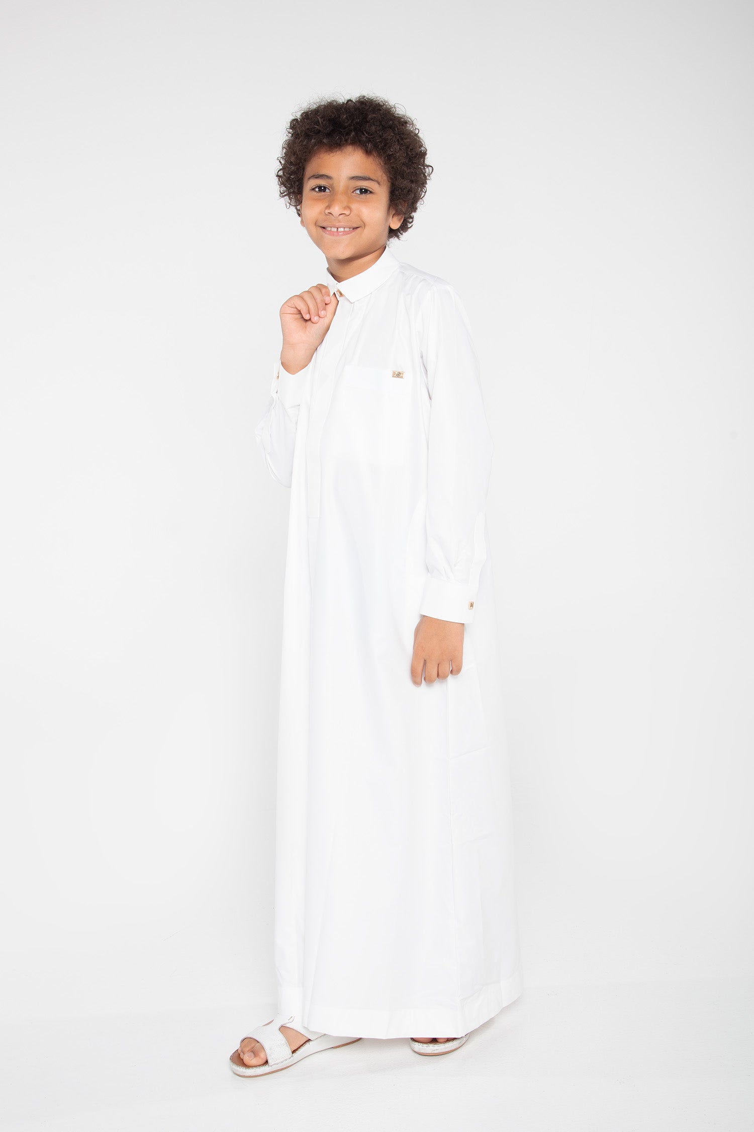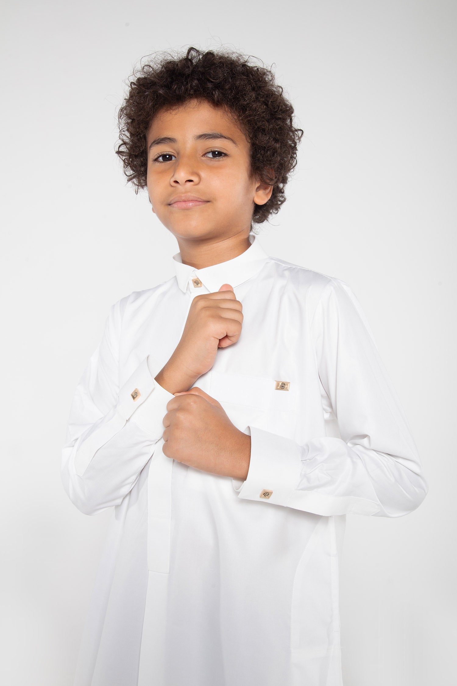 Upgrade your little boy's wardrobe with this stylish Qatari Style Thobe, perfect for formal occasions or special events.
