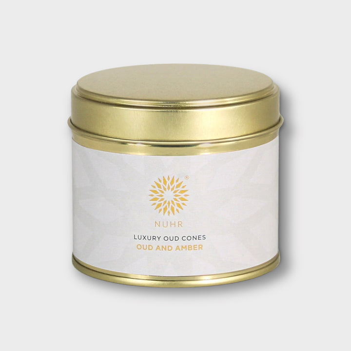 Luxury Oud Incense Cones in Oud and Amber - A distinctive, hypnotic amber fragrance where fruity nuances rest upon an intimate heart of East Indian sandalwood, enriched by Indonesian patchouli, resting on a sumptuous base of rock rose, Tonka and vanilla.