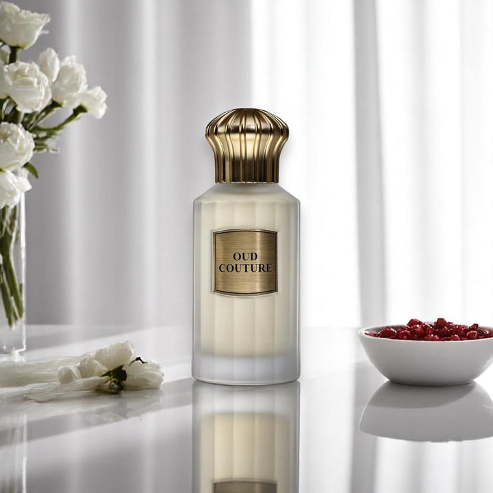 Oud Couture is a luxurious fragrance designed for both special occasions and everyday wear. This exquisite Eau de Parfum opens with vibrant top notes of orange, red berries, and peach, creating a fresh and fruity introduction. The heart reveals a beautiful bouquet of white flowers, rose, and honey, adding a sweet and floral richness. The base is anchored by earthy moss, smooth sandalwood, and warm ambroxan, providing a lasting and sophisticated finish. Oud Couture embodies sophistication and allure, making it the perfect addition to any fragrance collection.