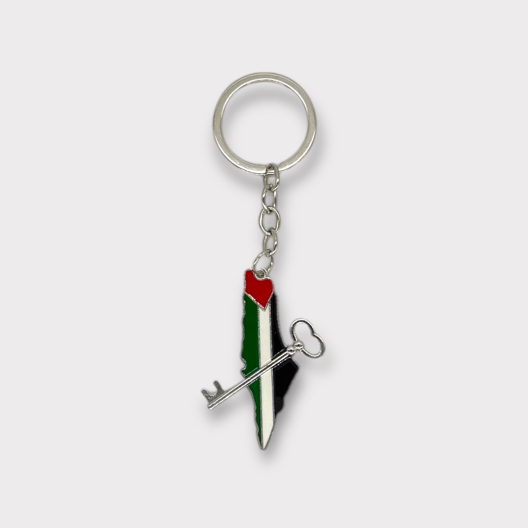 This Palestine map keyring is a practical and stylish accessory to show your support for Palestinian heritage and culture. Made of high-quality materials, it is durable and features a detailed map design. Perfect for keeping your keys organised and easily accessible. A must-have for any proud Palestinian or supporter.
