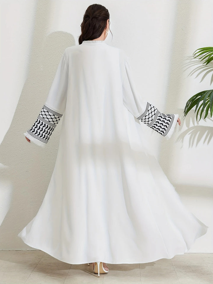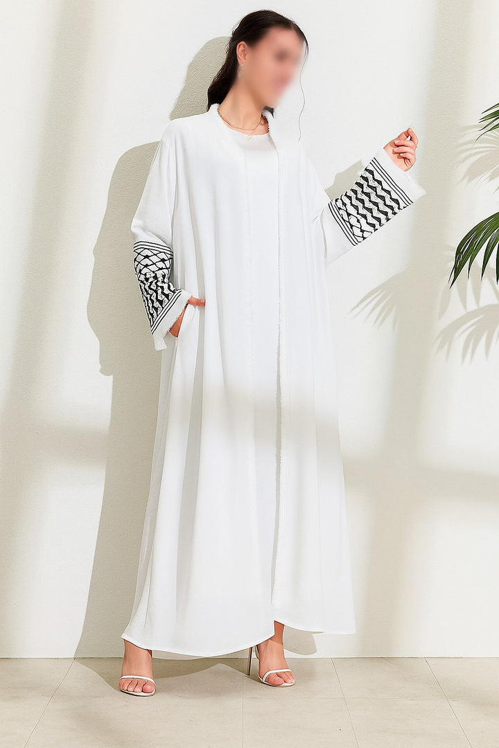Elevate your modest wardrobe with our Embroidery Abaya. Made with soft and lightweight fabric. The closed design will keep you stylishly covered, and the hijab is included. Hand wash gently for best care.