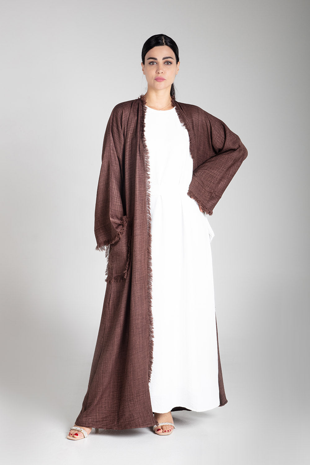 Unleash your inner zen with our luxurious Pastel Brown Linen Kimono. This full outfit set includes a kimono, slip, and scarf, making it the perfect statement piece for any occasion. Wrap yourself in comfort and style with this unique and chic kimono.