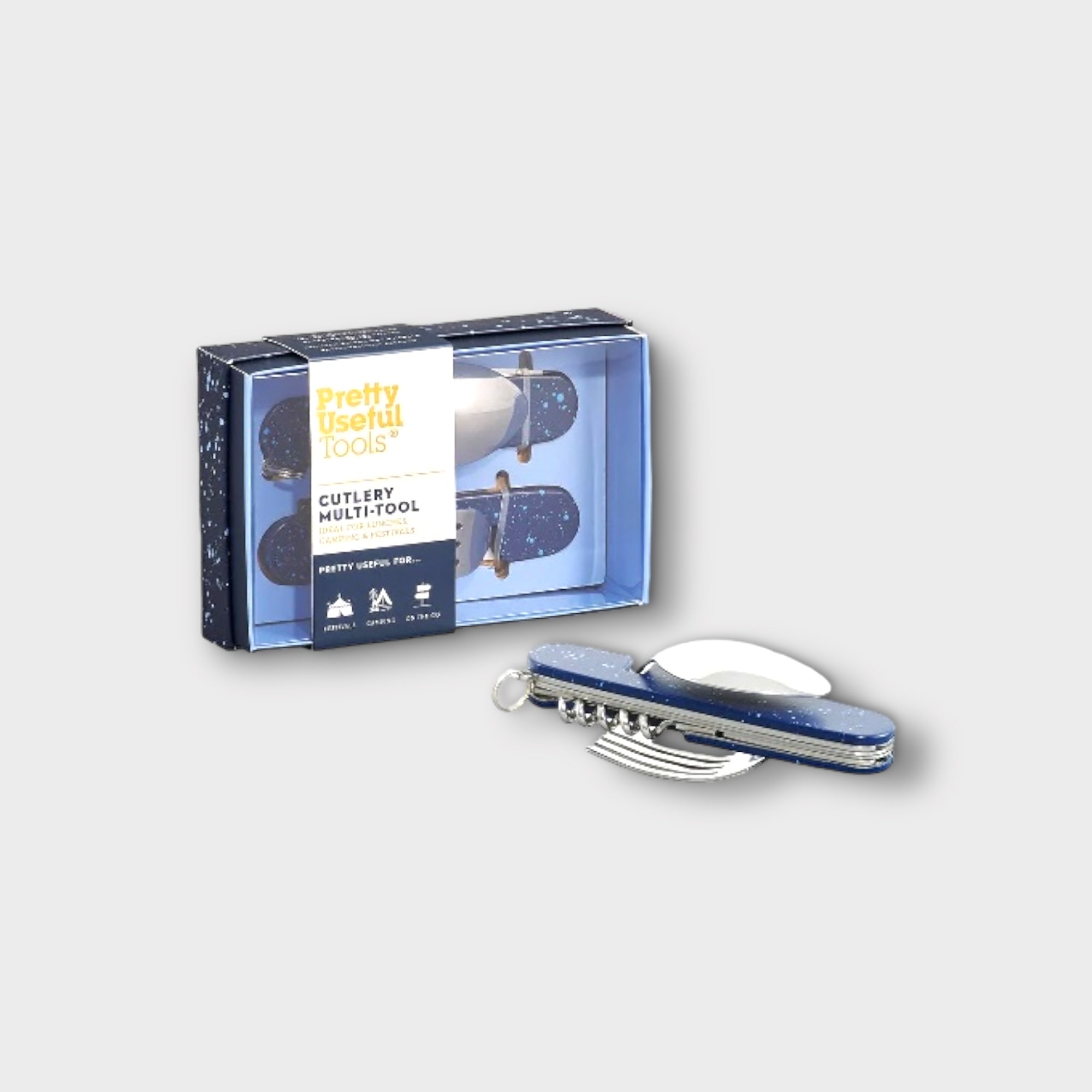 Stay prepared for office lunches, festival campfires and barbecues on the beach with the 6 in 1 Cutlery Multi-Tool from Pretty Useful Tools. Made from stainless steel with pretty patterned handles, the detachable design includes a knife, fork, spoon, bottle opener, can opener and corkscrew. Eating on the go has never been so easy! Comes packaged in a matching print gift-ready box.