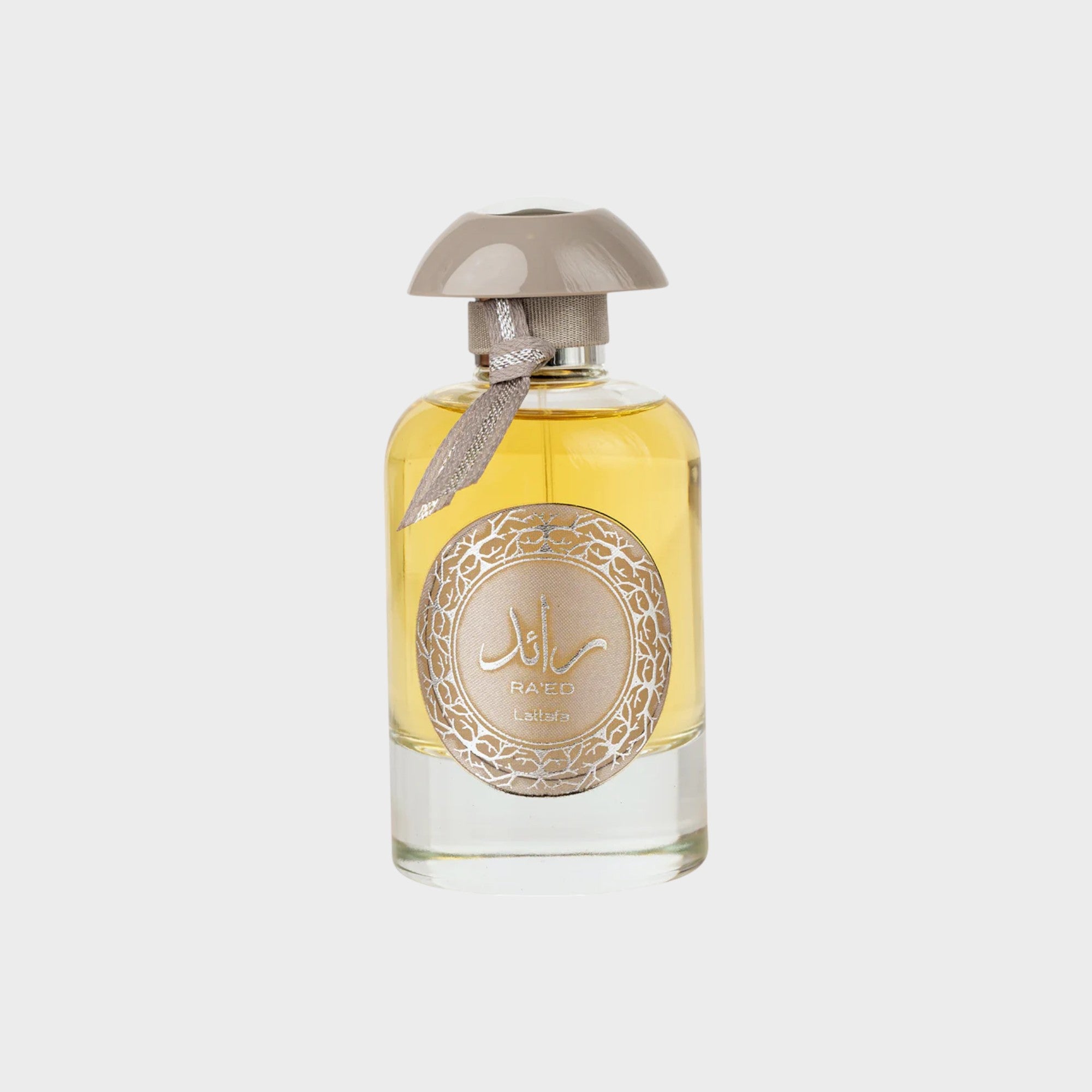 Ra'ed Silver by Lattafa Perfumes is a captivating oriental and spicy fragrance designed for both women and men. This elegant scent opens with vibrant top notes of mandarin oranges, citrus, and spices. The heart reveals a rich blend of saffron, cinnamon, and cloves, adding warmth and depth. The base is a luxurious combination of oudh, leather notes, ambergris, vanilla, and musk, creating a lasting, refined appeal.