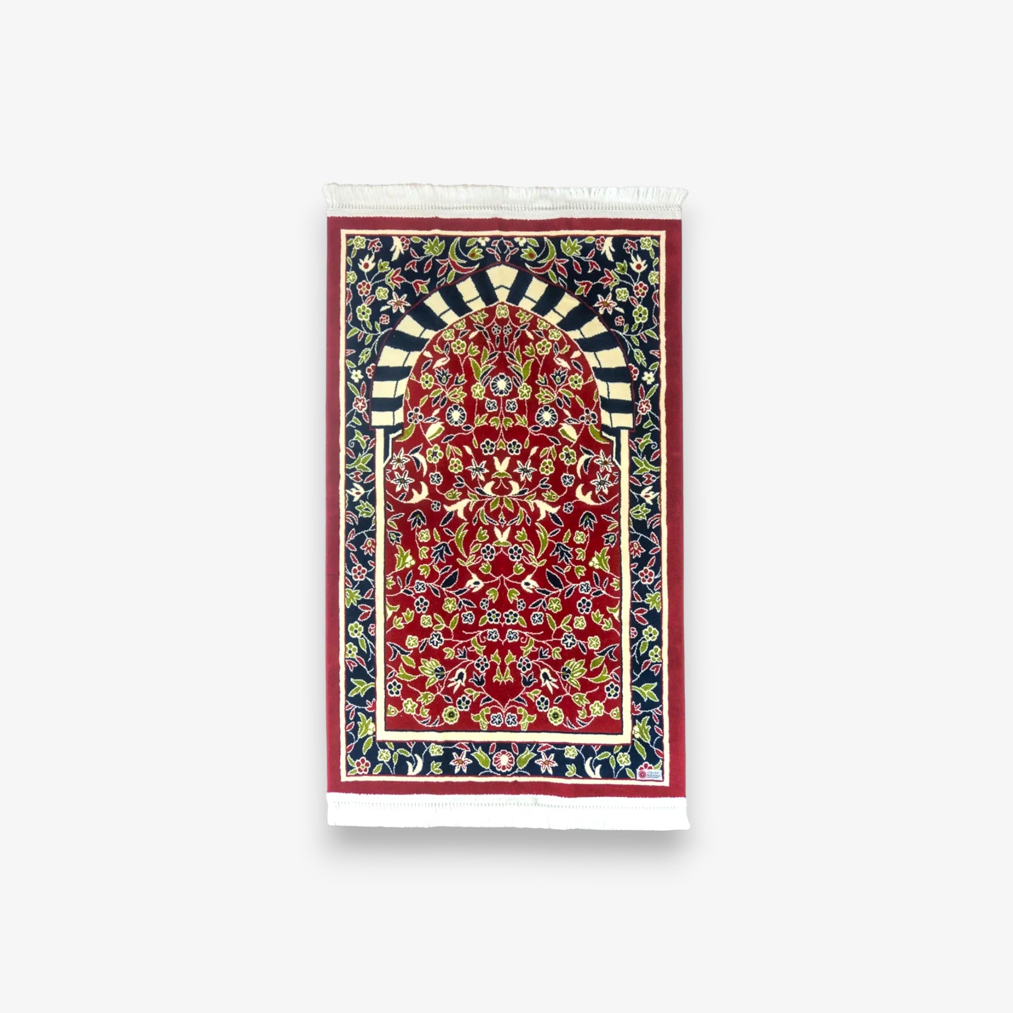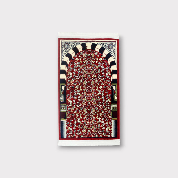 An exclusive addition to any interior decor, Al-Haram Prayer Mat is proudly crafted in Saudi Arabia, where it draws on traditional designs featured at the grand mosque of Makkah. Showcasing an elegant classic aesthetic, this high quality luxury rug's intricate design ensures an exclusive and tasteful experience that celebrates culture and art.
