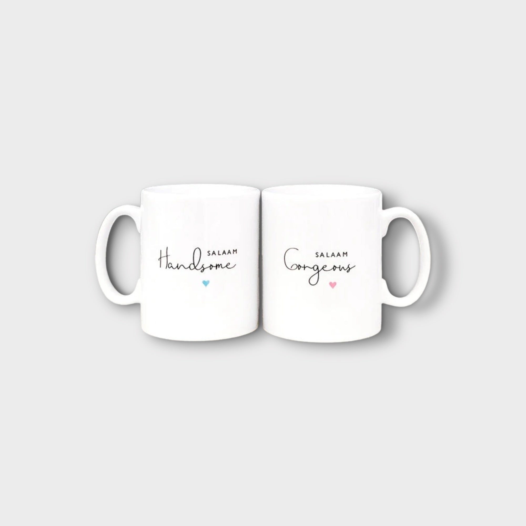 Salaam Gorgeous & Salaam Handsome. The contemporary designed mugs, with their cute messages, would be a great wedding or anniversary gift.