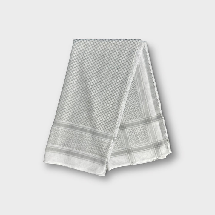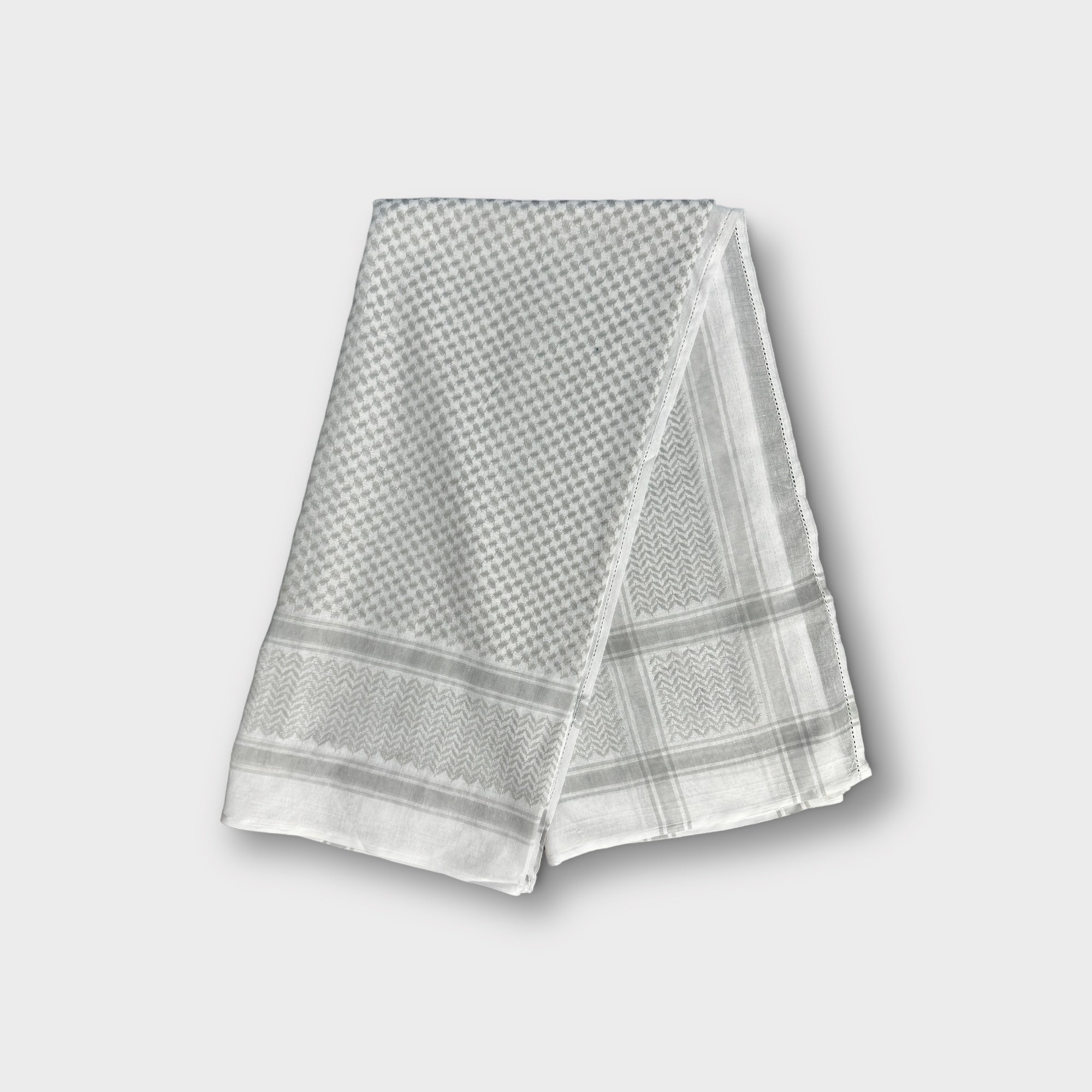 The Shemagh headscarf, also known as a Kufiyya or Ghutrah, is a traditional headdress primarily worn by men. Crafted from lightweight Polyester and an extra-long, square-shaped design, it can be used to protect the head, face and neck from sun, wind, and sand. Highly versatile, it can also be used as a scarf, turban, face covering, or makeshift towel.