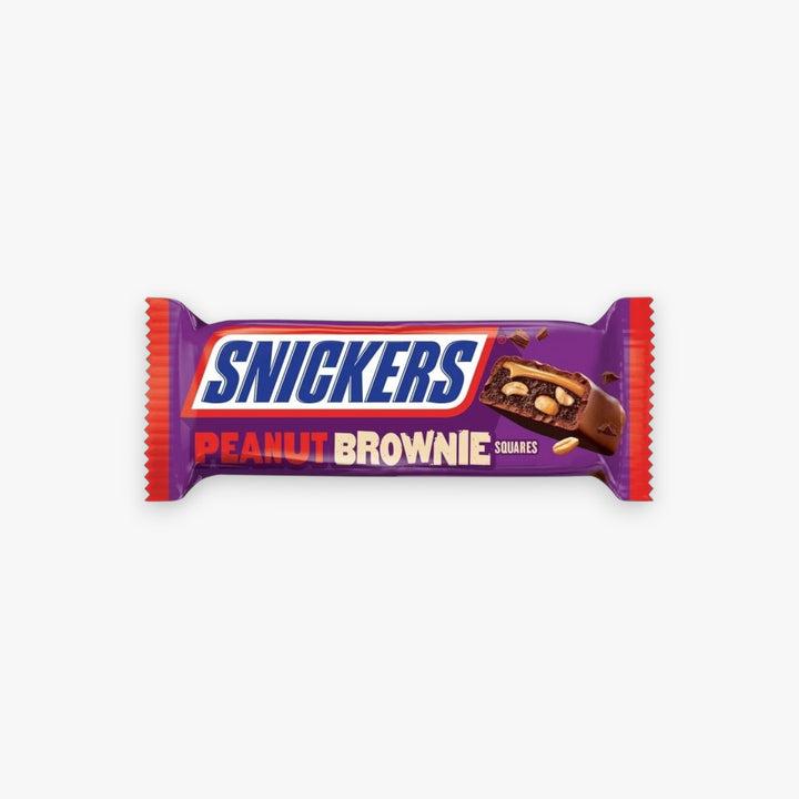 Why Snickers Peanut Brownie? Satisfy your hunger on-the-go with Snickers Peanut Brownie - the tastiest hunger fix! This irresistible chocolate bar is filled with crunchy peanuts, chewy caramel and rich brownie flavour, all wrapped in a rich smooth chocolate coating.