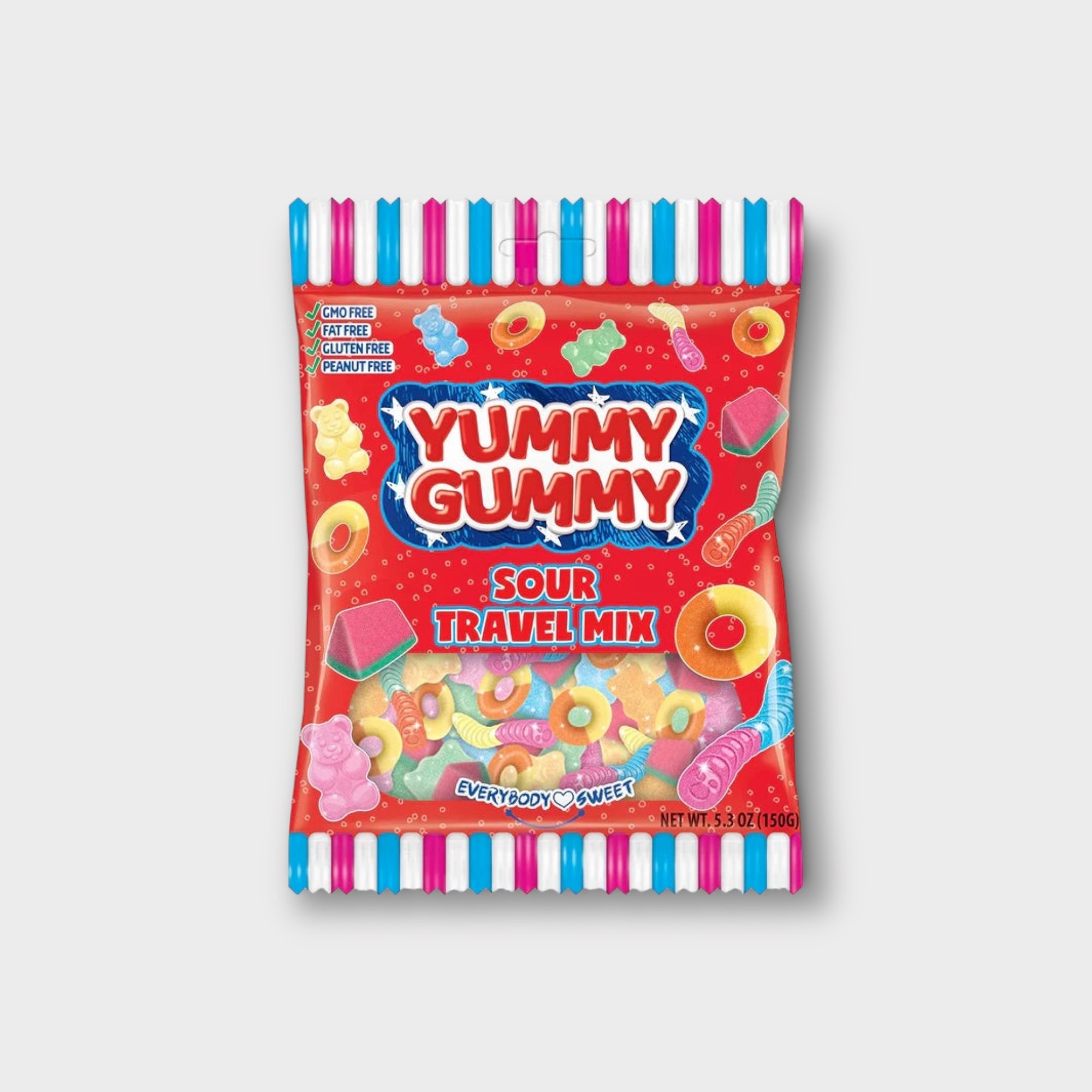 Discover a deliciously sour mix of fruity gummies with Sour Travel Mix by Yummy Gummy. Perfect for on-the-go snacking, this tasty mix is sure to satisfy your cravings and keep you energized during travels. Enjoy the bold flavors without compromising on convenience.