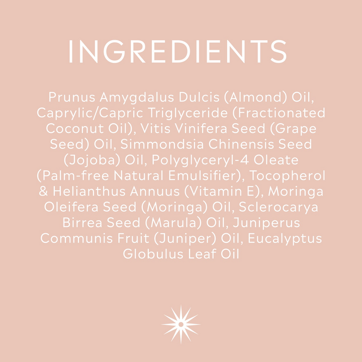 We hand blend a base mixture of oils including jojoba, marula & almond, chosen because of their known hydrating and soothing properties, so you get the softest, healthiest skin ever!