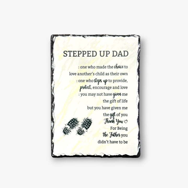 Ttep up your step dad game with our Step Dad Slate! This unique slate is the perfect gift for any deserving step dad. Made with high quality materials, it's durable and sure to last. Show your appreciation and make your step dad feel special with this thoughtful gift