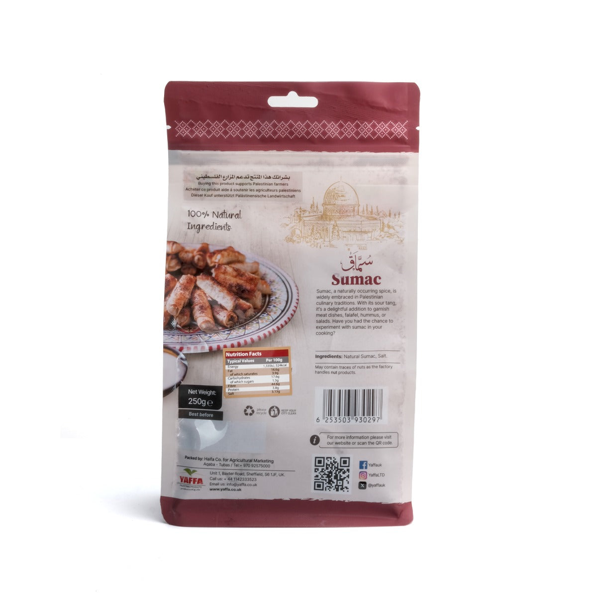 This naturally occurring sumac is harvested from the hills of Palestine and cherished for its tangy, sour flavour. A key ingredient in the traditional dish Msakhan, it’s ideal for marinating chicken or meat and adds a vibrant touch when sprinkled on dishes just before serving. It also enhances salads—just add a pinch before eating.