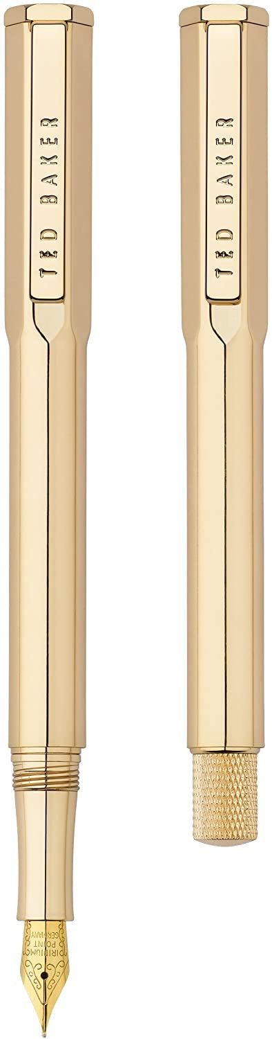 This beautiful gold 24 carat gold plated fountain pen with black ink from Ted Baker exudes elegance and refinement.