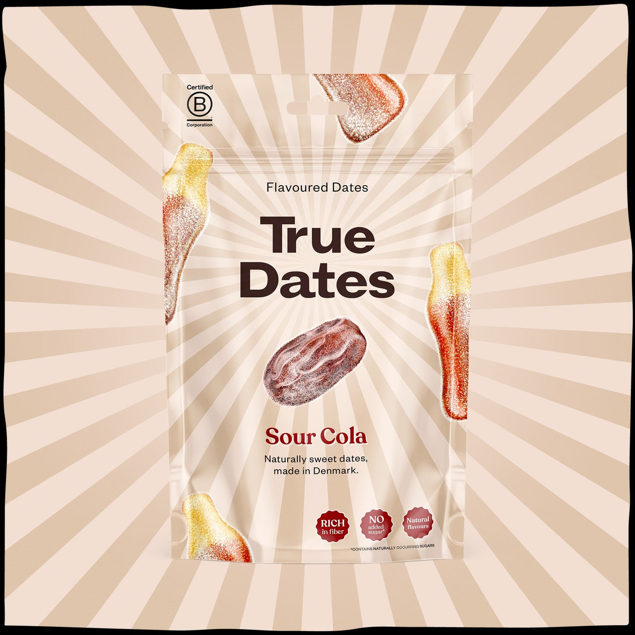 Experience a burst of nostalgia with our Sour Cola True Date. Infused with the bold and tangy kick of cola flavour, it’s a unique, guilt-free indulgence that brings the joyous days of fizzy delights back to life.