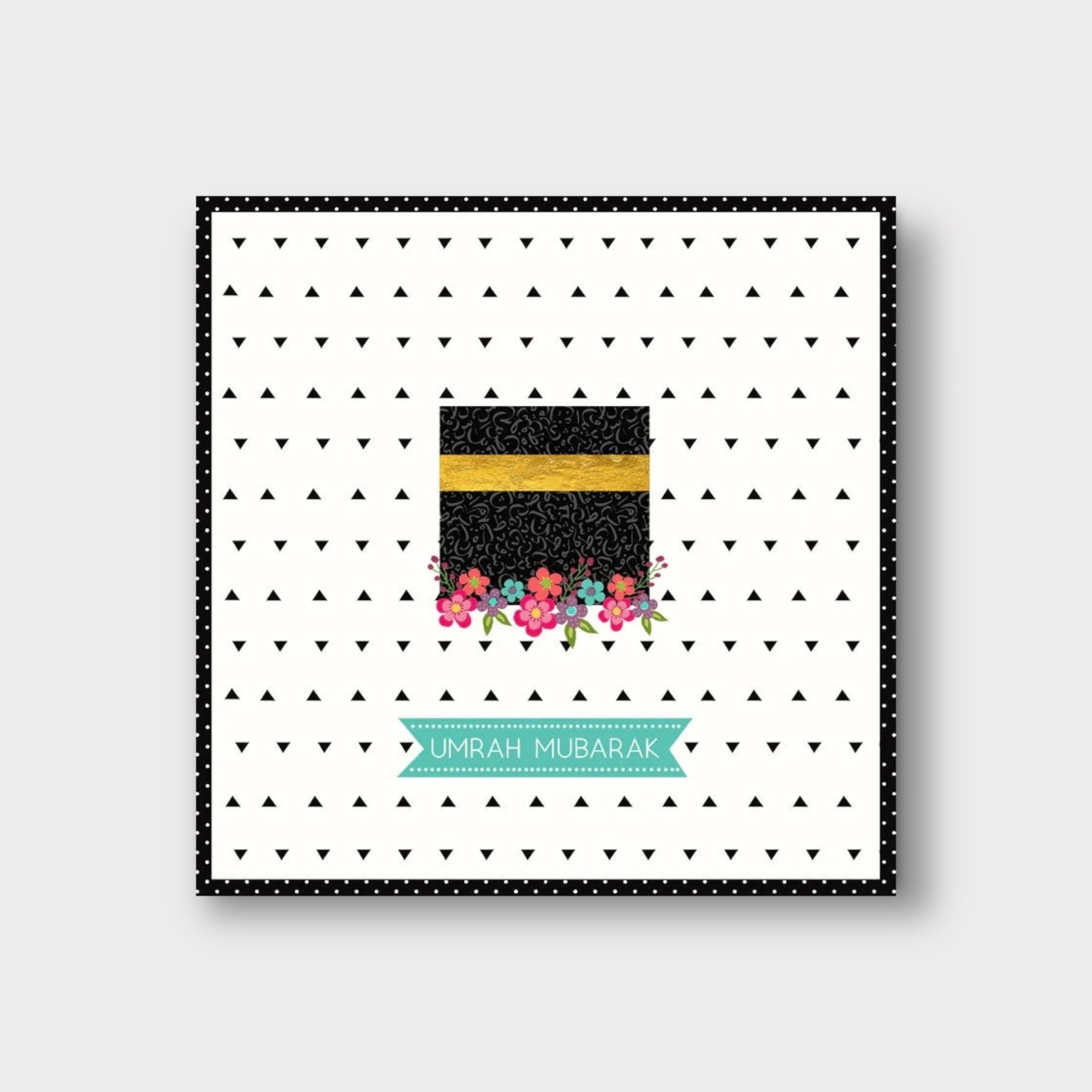 A contemporary Umrah Mubarak Islamic greetings card with floral detail. The perfect way to congratulate loved ones on their return from Umrah. Blank inside for your own personal message and printed on premium quality FSC approved board.