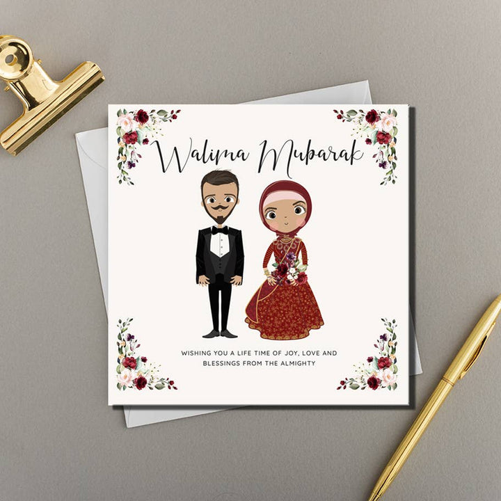 Card Reads: WALIMA MUBARAK WISHING YOU A LIFE TIME OF JOY AND BLESSINGS FROM THE ALMIGHTY