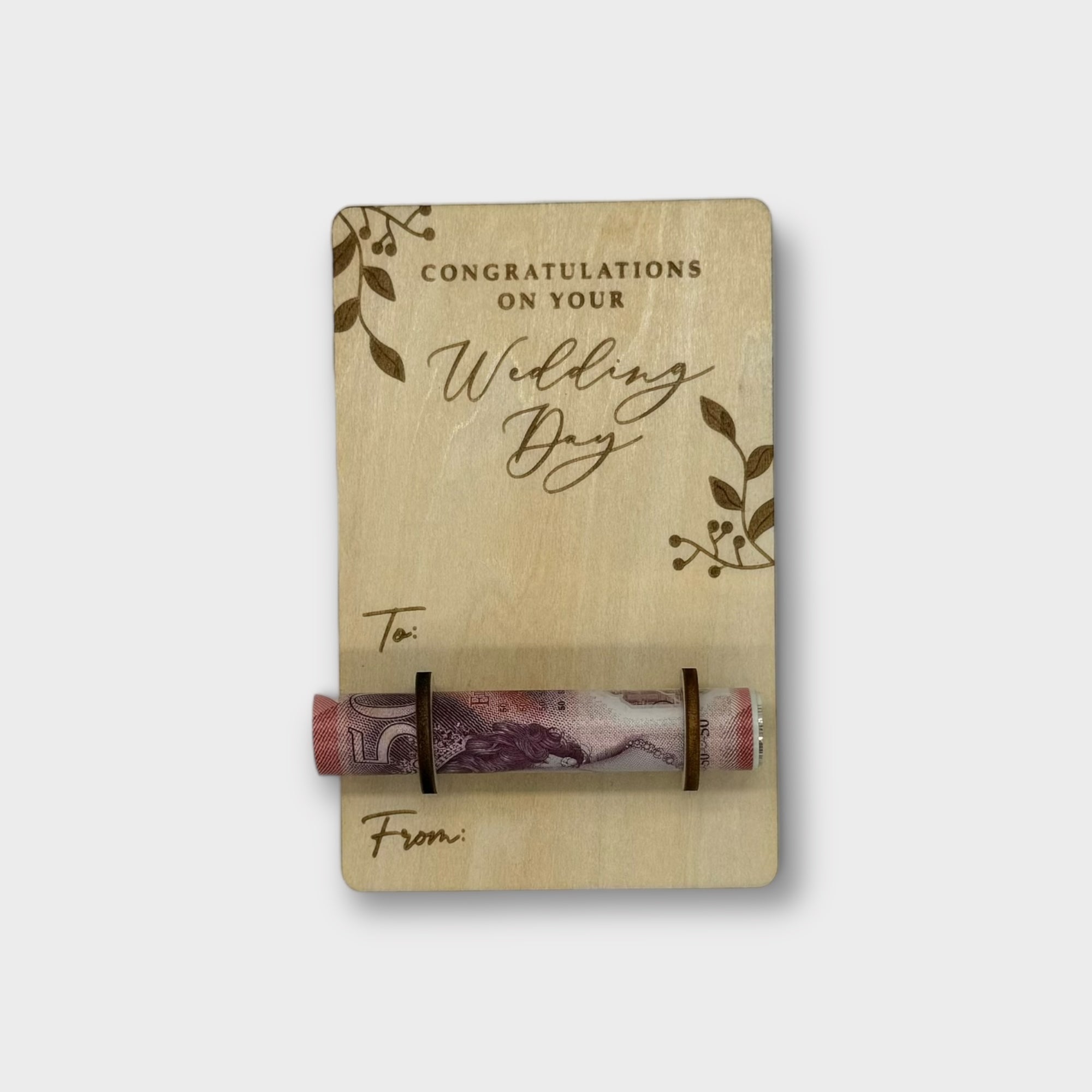 Celebrate the joyous occasion of a wedding with this thoughtfully designed product that combines a beautiful card with a practical money-holding solution.