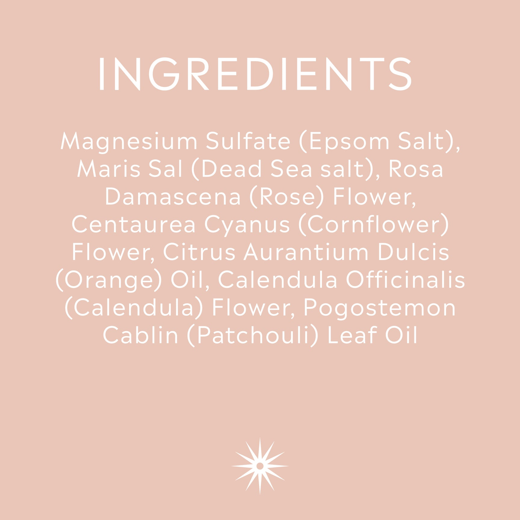 These floral bath salts are infused with the heady scent of patchouli and zesty sweet orange. Pour under running water and watch as a veritable garden of delights unfolds in the bath!